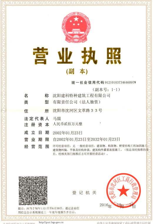 隸屬沈陽市建設工程質(zhì)量檢測中心,是沈陽市最早成立的國有建筑結構加固公司之一。公司主要經(jīng)營:建筑物、構筑物、橋梁結構工程加固施工;建筑物糾偏、平移及結構補強;建筑構件灌漿連接施工等,于2002年1月23日在沈陽工商局注冊,公司注冊資本人民幣200(萬元),公司辦公地址位于沈陽市沈河區(qū)文萃路33號,在職員工25人,公司成立以來,先后承擔了遼寧省及沈陽市的大型工程改造及加固施工工程。
